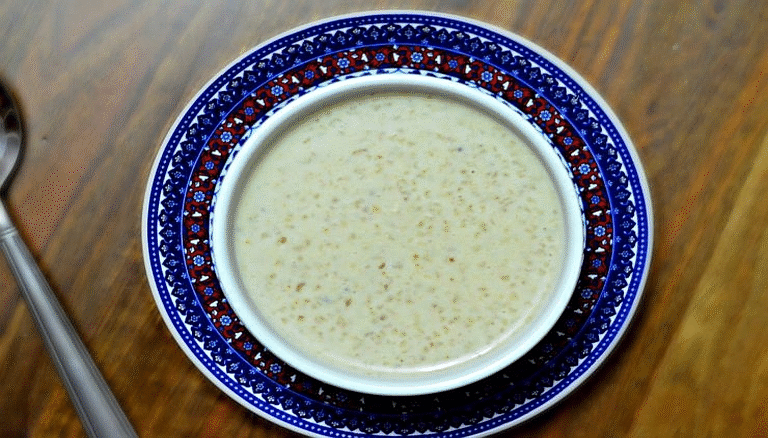 Piena zupa ar miežu miltu klimpām